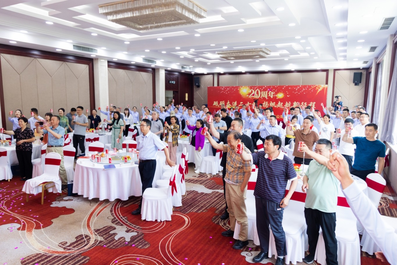 “5,4,3,2,1!”當董事長與分公司領導共同切開二十周年紀念蛋糕,地爆球綻放如星辰,大屏播放著全員生日祝福視頻?!熬催^往崢嶸,廿載輝煌!敬未來可期,宏圖大展!”全場舉杯共飲的瞬間,每個人眼中都閃爍著對下一個二十年的憧憬。